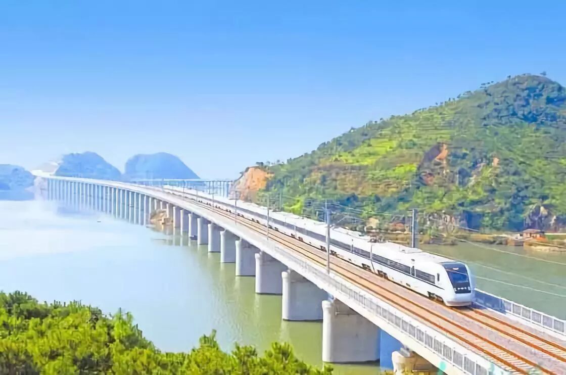 一条铁路,就是一道靓丽的风景线。 古来闽道多艰,如今闽道溢美。 向莆铁路穿越众多风景名胜区,率先戴上了“最美铁路”之桂冠。 厦深铁路将厦门、汕头、深圳三个经济特区串联成一线,被喻为“特区之虹”。 合福高铁等级高、速度高、颜值高,沿途的美景、茶香、文化惹人醉,被亲切地称为“醉美合福”。 赣瑞龙铁路为赣南、闽西等革命老区服务,身体里注满了红色基因,被形象地誉为“红色高铁”。 当你坐在平稳舒适的动车里,飞驰在青山绿水之间,领略着八闽大地的美丽风光,是否有一种浪漫的感觉扑面而来? 遥想当年,闽道难,难在大海风涛,大山隔阻,闽人如虫入大门,难进难出。 思量现在,闽道美,美在四通八达,颜值在线,旅人似走家串门,想走就走。 从一条鹰厦铁路到九条出省通道,从尽头线路到东南枢纽,从地无寸铁到市市通动车,从慢如蜗牛到风驰电掣,福建充分尝到了铁路发展带来的“红利”。 闽道难,已然成为历史。